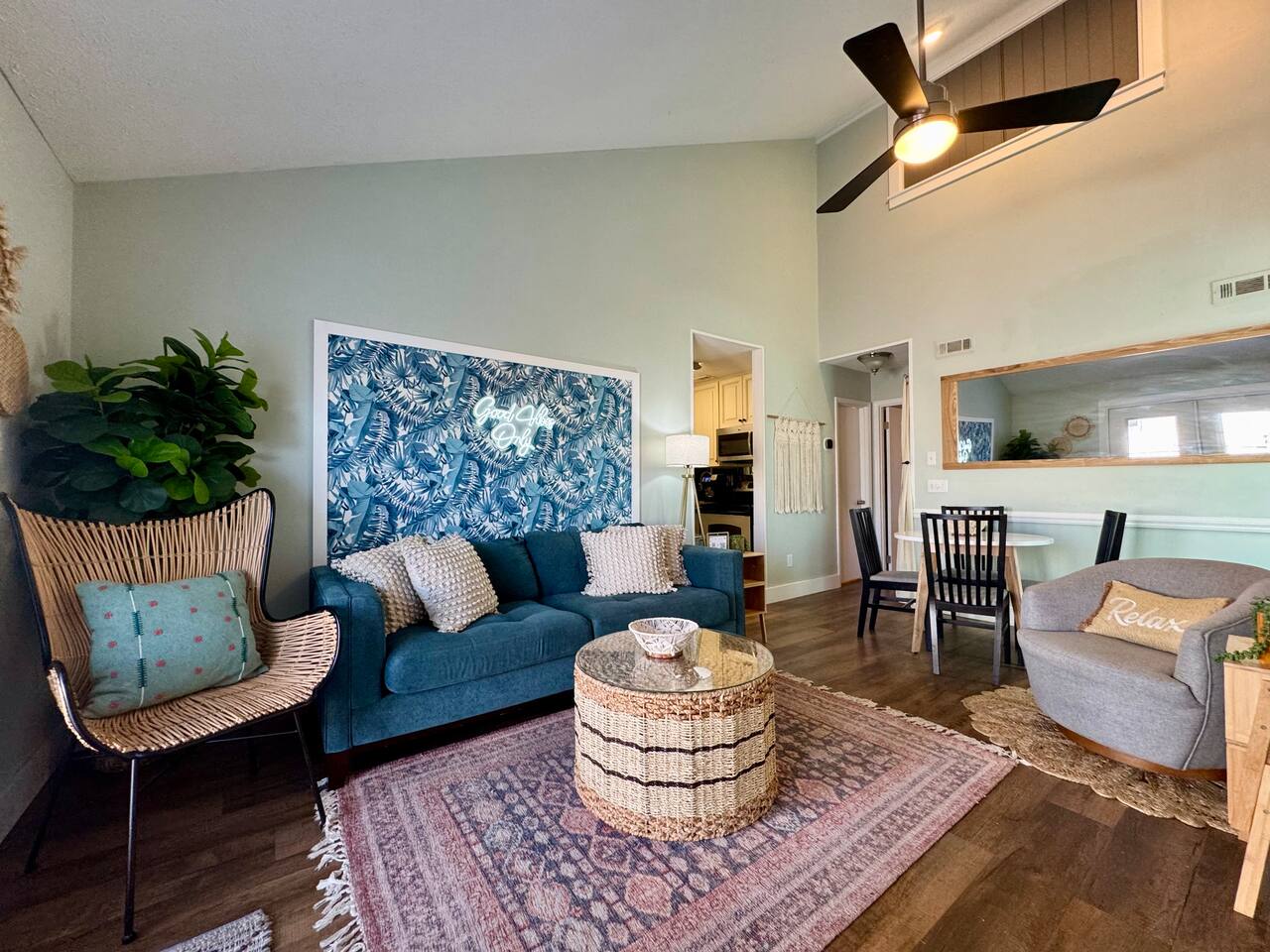 Our perfectly styled townhome is a cozy, convenient retreat full of amenities for unforgettable memories. Sip coffee on the patio, watch your kids play putt-putt, bike to the beach, dive into the pool, and enjoy game nights and sunsets. This is a space for family, fun, and relaxation—where meaningful moments are made and shared. Resort requires wristbands ($20 each for guests 5 years+) and a parking fee ($25 per vehicle), both paid on-site. You’ll love the vibe, the comfort, and the location.