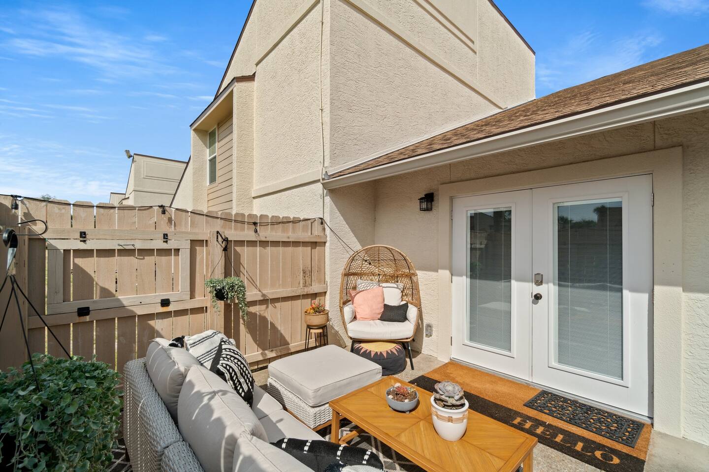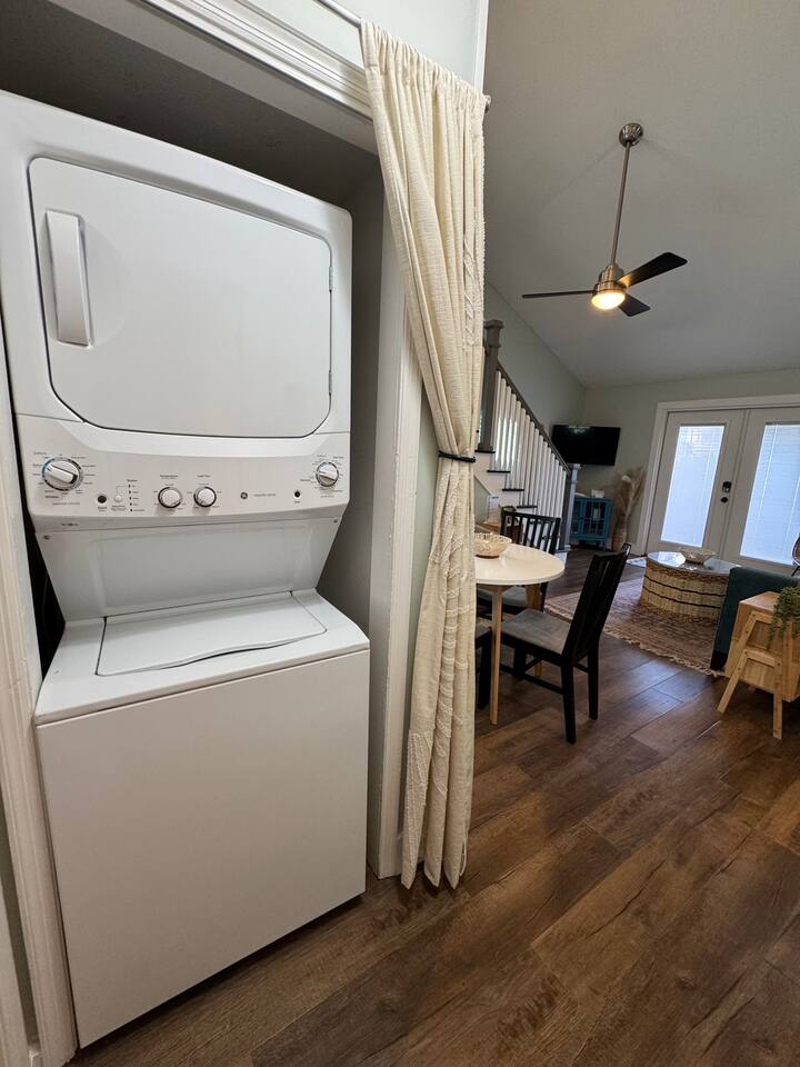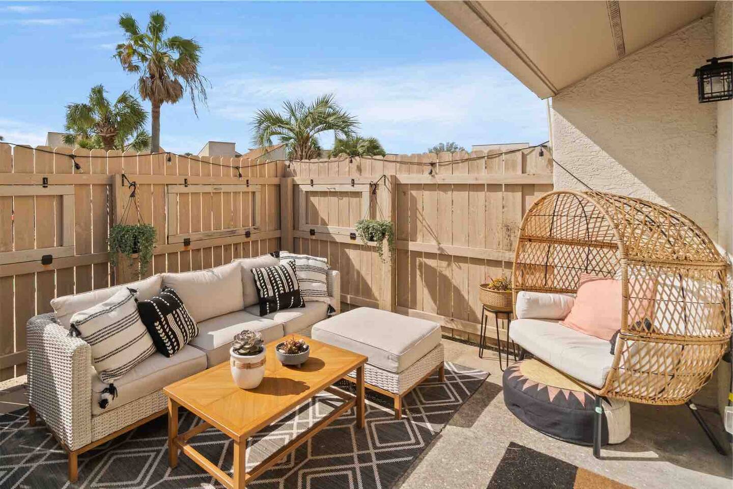 THE PRIVACY: ☼Private 2-story townhouse ☼Giant patio with privacy fence and outdoor shower ☼Gated community ☼2 bedrooms and 2 bathrooms THE CONVENIENCE: ☼Keyless entry ☼4 beach chairs, umbrella, and wagon included ☼3 Smart TV’s with option to stream your Hulu, Netflix, etc ☼Desk space with high speed WIFI ☼Pack n Play, high chair, baby gate ☼Full kitchen including milk frother, air fryer, and blender ☼Washer and dryer and clothes steamer ☼Small dining table ☼Shared outdoor grill Up to 2 parking spaces (see more info on parking passes below) $25 parking pass per car. Parking is first come first serve. They are not assigned spots but normally you can find parking in front of the unit. 1 king size bed in the downstairs bedroom and 2 queen beds in the upstairs bedroom. THE MEMORY MAKERS: ☼2 beach cruiser bikes ☼Shuffleboard, putt-putt, and tennis court with equipment included ☼4 pools (one heated), kiddie pool, and hot tub ☼Board games and books